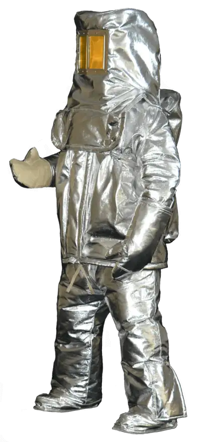 The suit features a Z-Flex® aluminized outer shell which reflects 95% of radiant heat and withstands radiant temperatures up to 3000°F (1650°C). In addition to providing outstanding protection, Z-Flex is also the most durable aluminized material available and will not de-laminate under even the most demanding conditions. A foil layer beneath the outer shell, and O-PAN heat barrier, and two layers of fiberglass insulation work together to provide maximum protection for extended exposure to extreme temperatures.